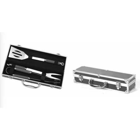Équipée d’une spatule, d’une fourchette et d’une pince pouvant être suspendues.