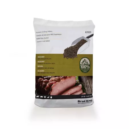 Les pellets au goût Hickory ont un goût de fumée intense. Ils s’accordent parfaitement avec le porc, le boeuf, la volaille et les légumes.