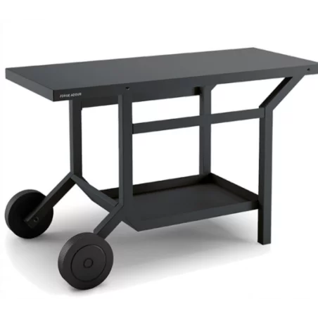 Table roulante rĂ©sistante aux intempĂ©ries. Plateforme de rangement en dessous de la table, elle permet Ă©galement de stocker une bouteille de gaz.Â